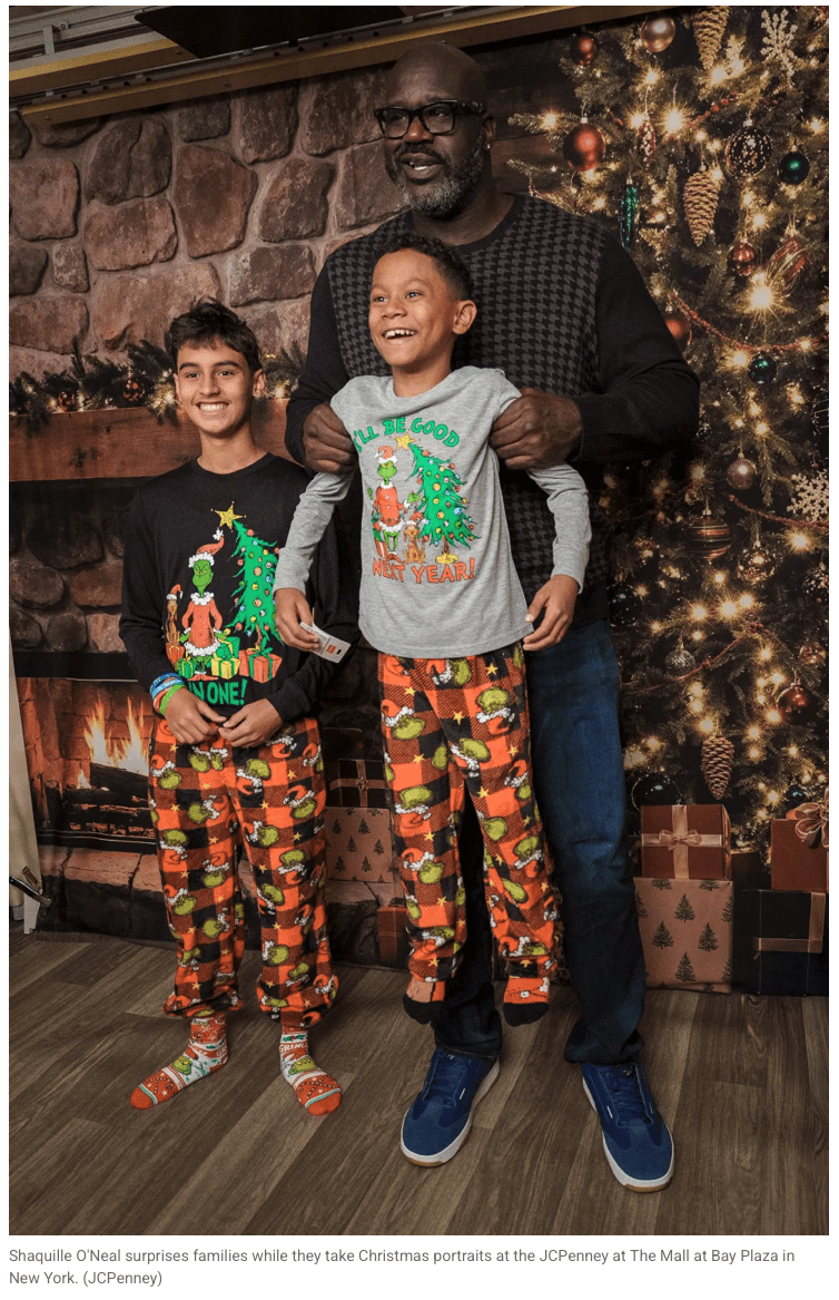 Shaquille O’Neal — four-time NBA champion, Basketball Hall of Famer, and certified king of surprise generosity — popped into the sessions completely unannounced, photobombing family pictures and handing out $1,000 JCPenney gift cards to each household. The moment instantly turned a simple holiday photo shoot into a memory they’ll be sharing for years.