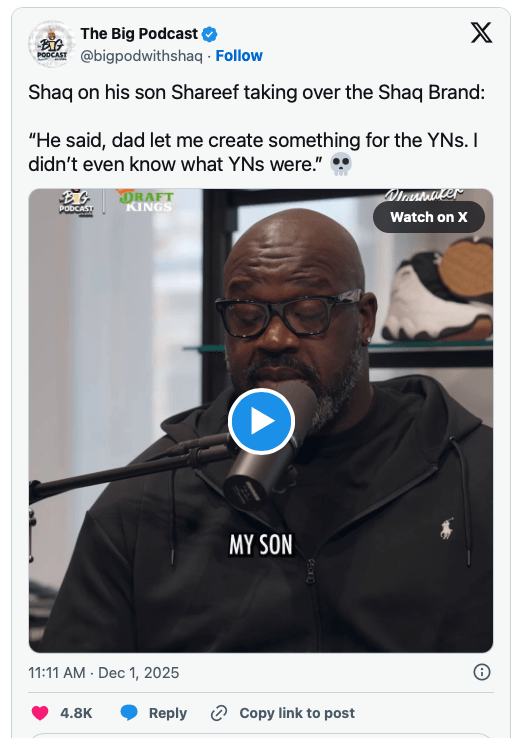 The Shaq Brand has always been big, bold, and unmistakably Shaquille O’Neal. But now? It’s taking on a fresh look — and a new leader. On a recent episode of The Big Podcast with Shaq, the NBA legend dropped some major news: his son Shareef O’Neal is officially stepping into the family business and taking the reins of his father’s iconic sneaker line.