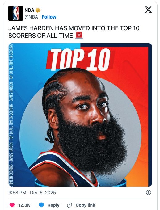The milestone didn’t go unnoticed by Harden, who reflected on the moment afterward.