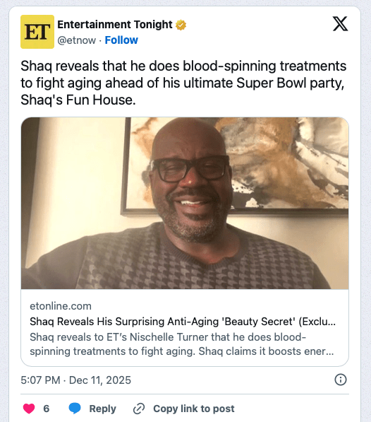 That “secret” includes blood-spinning treatments, a cosmetic procedure that has grown increasingly popular among athletes, entertainers, and public figures looking to maintain energy, recovery, and skin health. The treatment, which uses components of a person’s own blood to promote rejuvenation, has been embraced by many who prefer minimally invasive options over traditional cosmetic surgery.