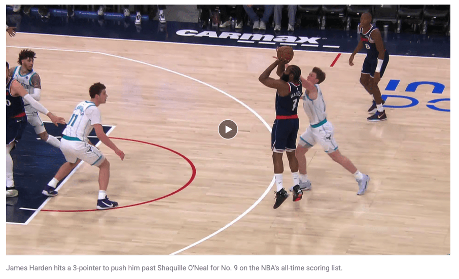 With that shot, Harden reached 28,598 career points in just 1,187 regular-season games, edging past Shaq’s career total of 28,596 points scored over 1,207 games across a dominant 19-year career.