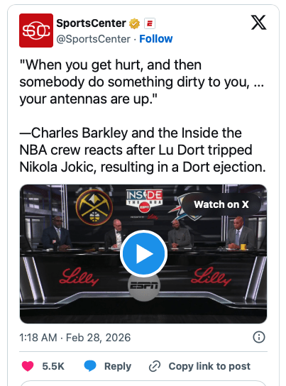 Barkley pointed out that players get bumped and knocked around all the time — it’s part of the NBA grind. But he also noted that when you’ve recently missed significant time with an injury, your “antennas are up.” In that context, Jokic’s fiery response and the officials’ decision made more sense to Chuck.